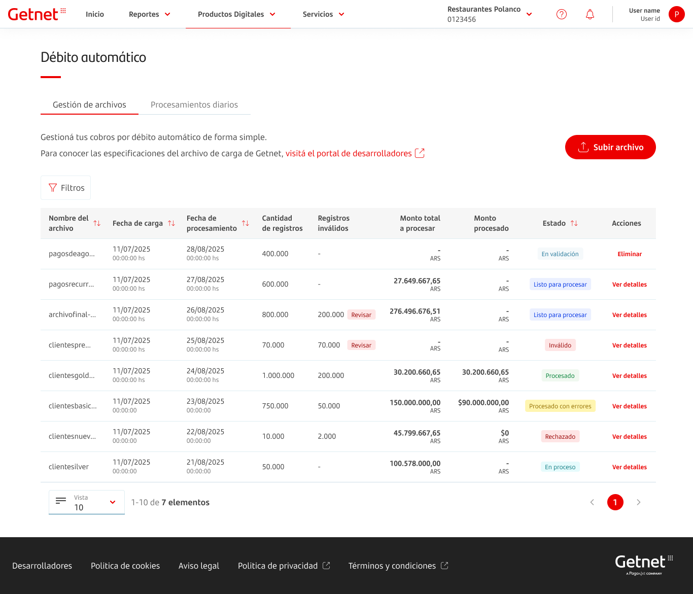 Para iniciar el proceso de débito automático, cargue su archivo de cobro a través del Portal del Comercio tal como se describe a continuación.