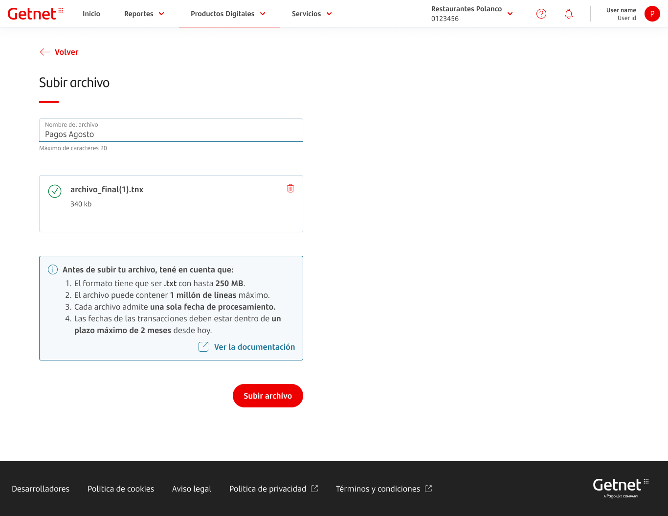- Haga clic en Subir archivo para confirmar.
